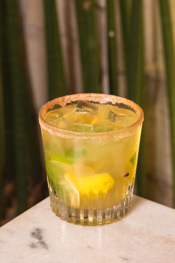 Gin Beefeater 24, Licor St. Germain, maracujá, limão e zest limão-siciliano