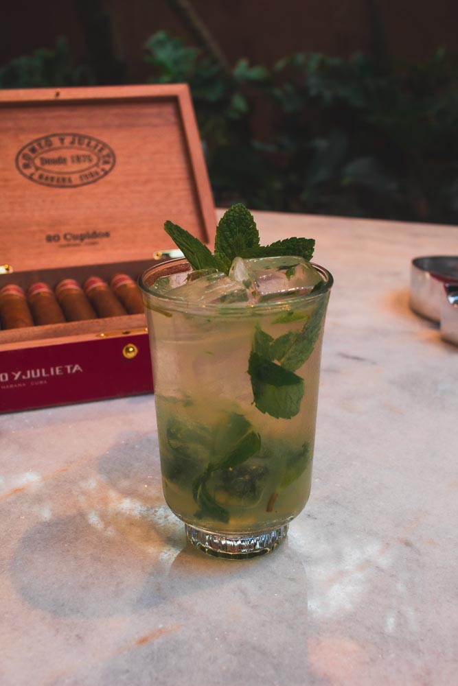 Rum Havana 7, hortelã, limão-siciliano e macieira e xarope simples