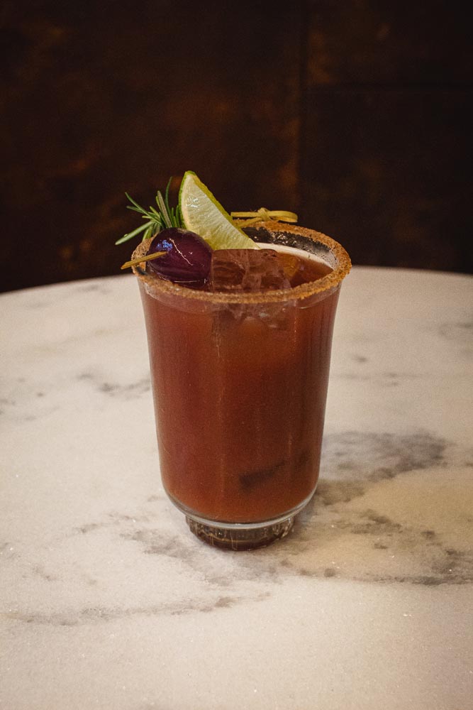 Bourbon Whisky, limão xarope simples e uma camada de vinho tinto